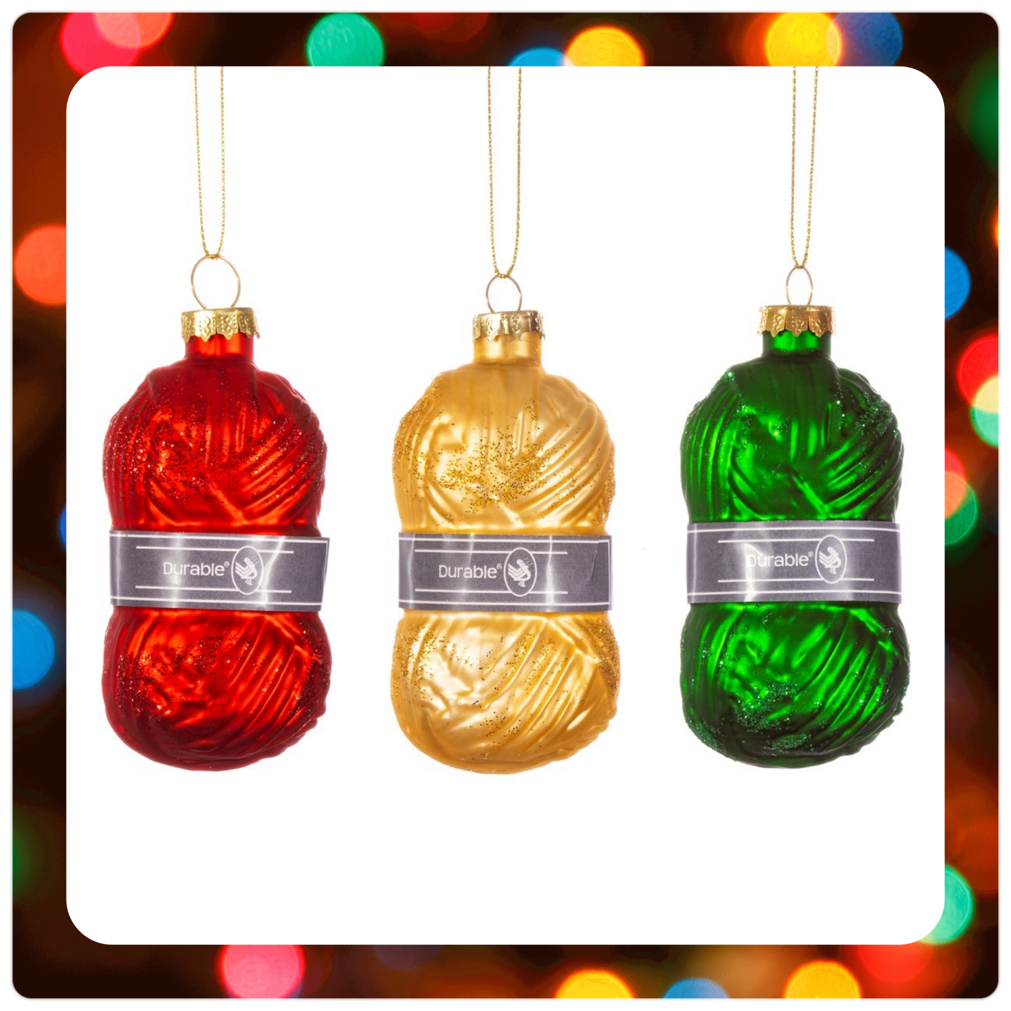 * SOLD * Fraaie kerstornamenten "Knotten Wol-trio" | Sass & Belle